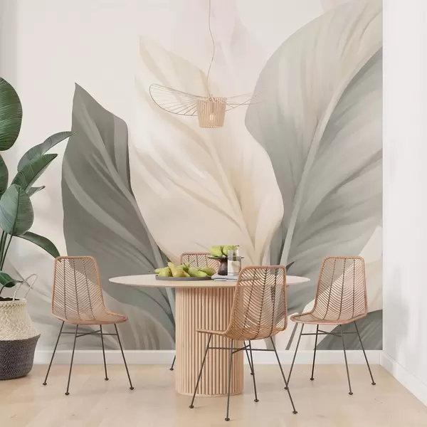 Fototapeter Beige og grå blader på en lys bakgrunn Nr. w02217