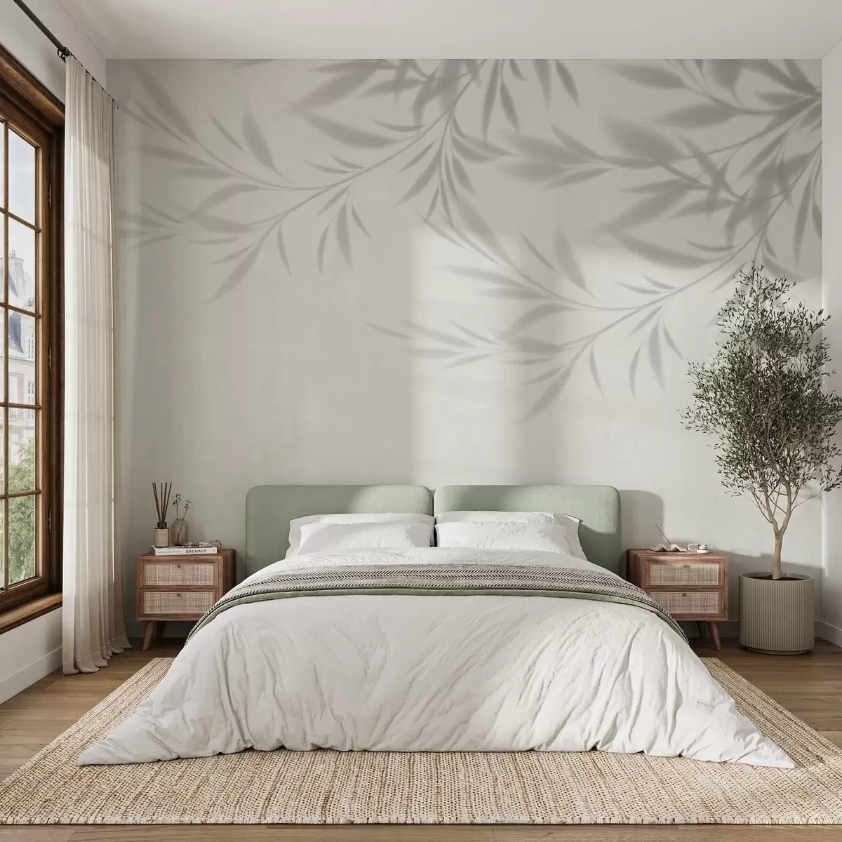 Fototapeter Skygge av grener og blader på en bakgrunn av oliven Nr. w02283