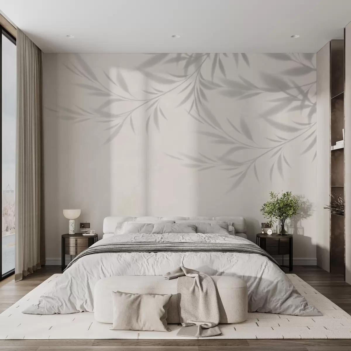 Fototapeter Skygge av grener og blader på beige bakgrunn Nr. w02283v1