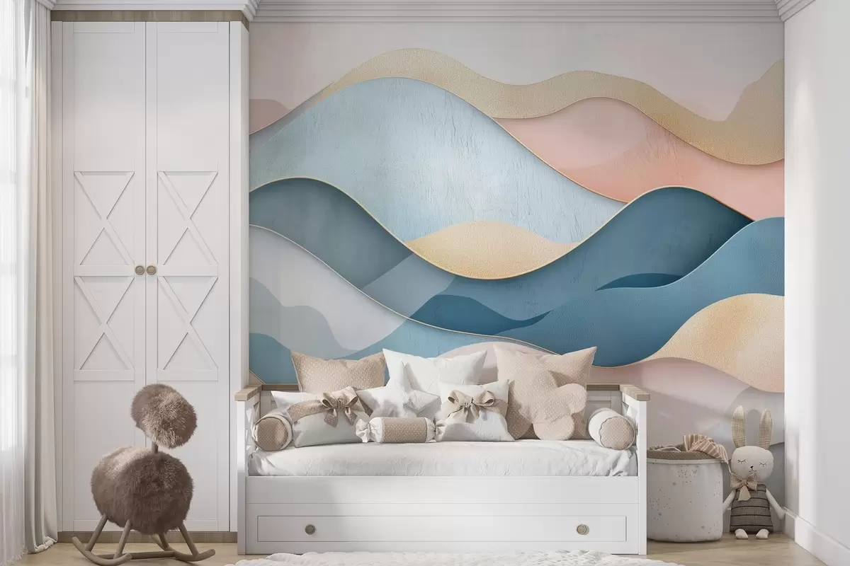 Fototapeter Bølget art deco-mønster i rosa og blå farger Nr. w02290