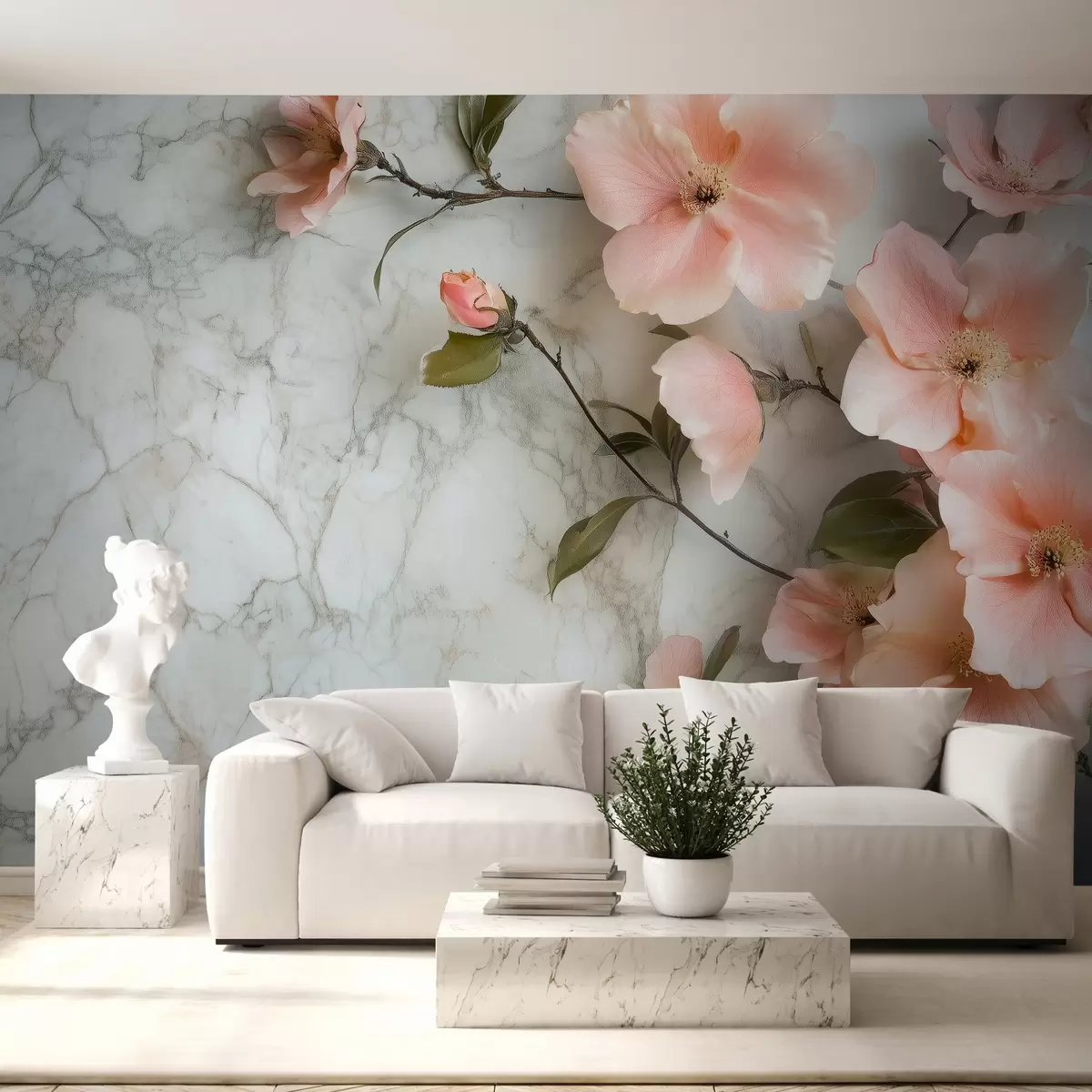 Fototapeter Delikate blomster på bakgrunn av marmorimitasjon Nr. w02291