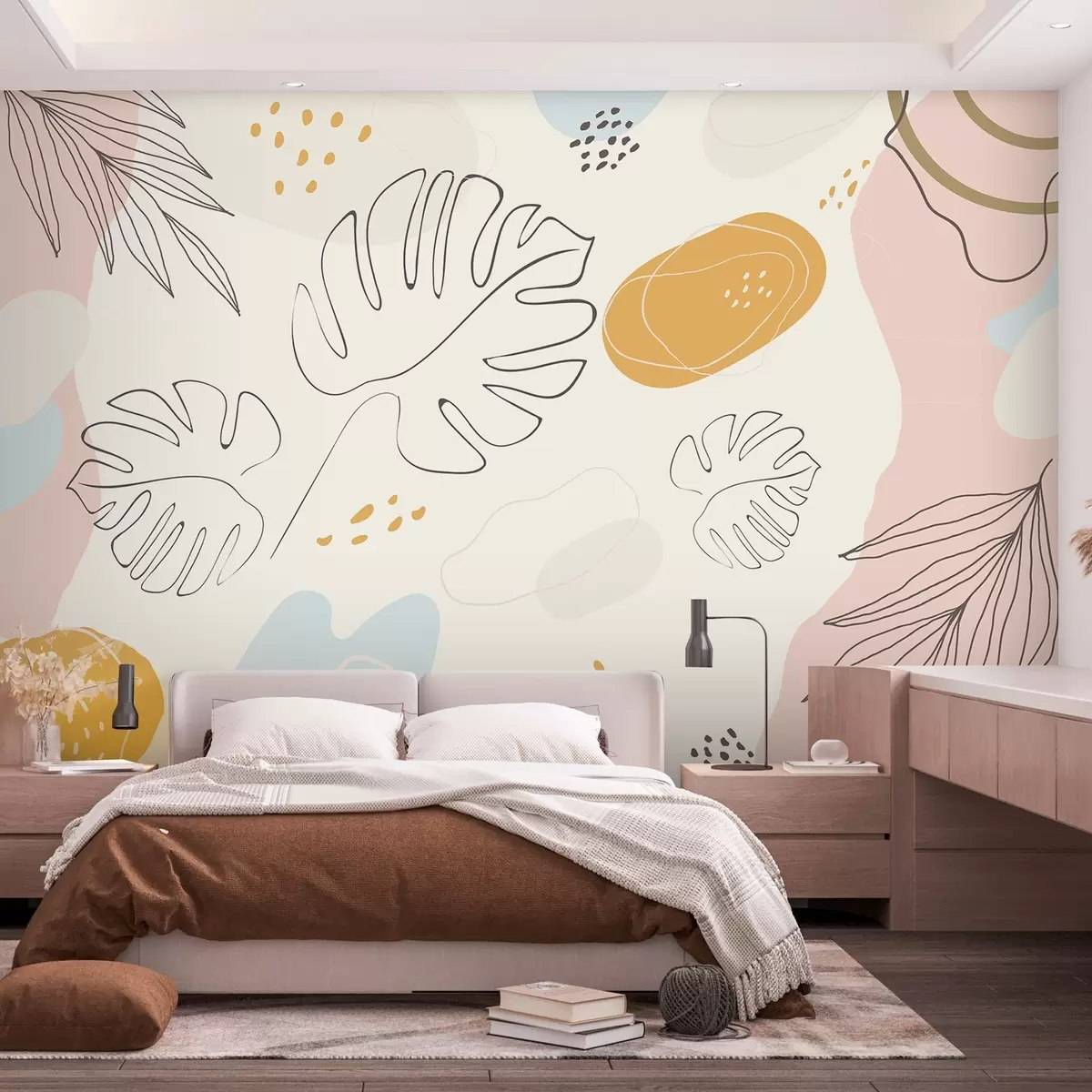 Fototapeter Boho-design med blader og figurer i pastellfarger Nr. w02322