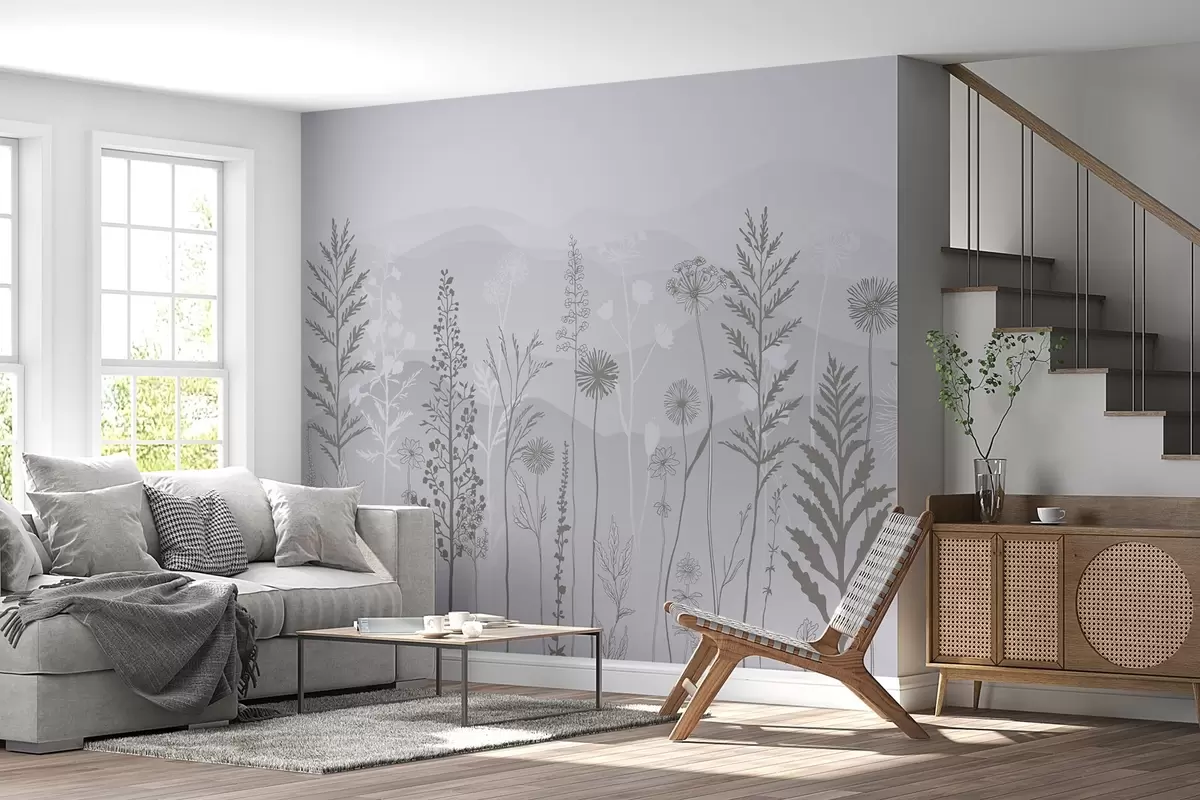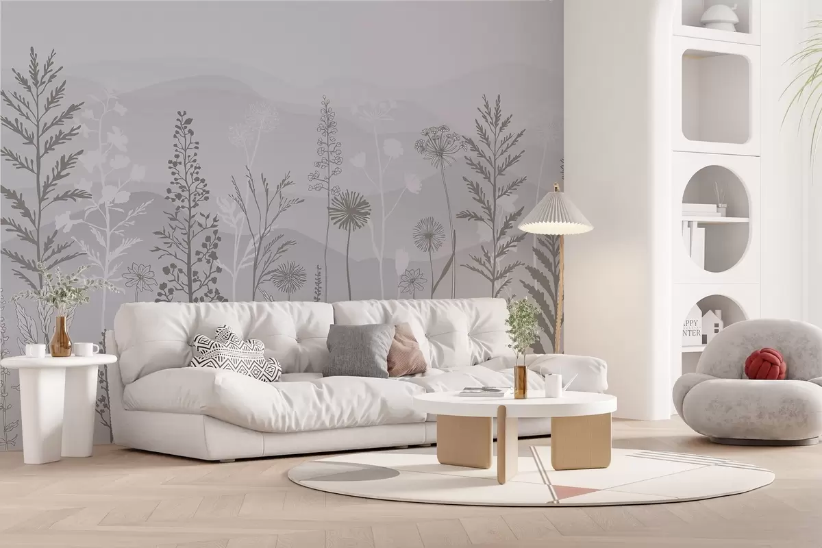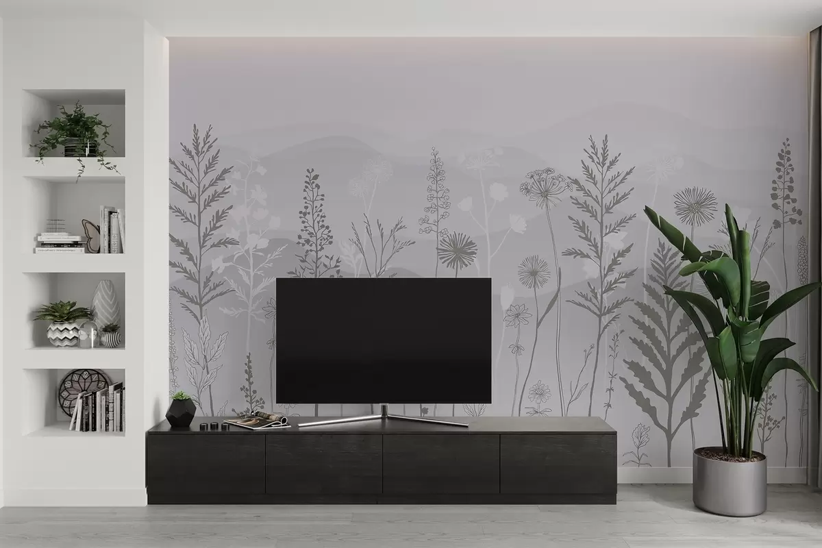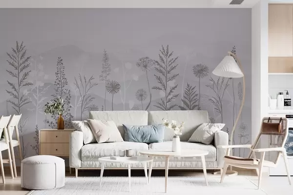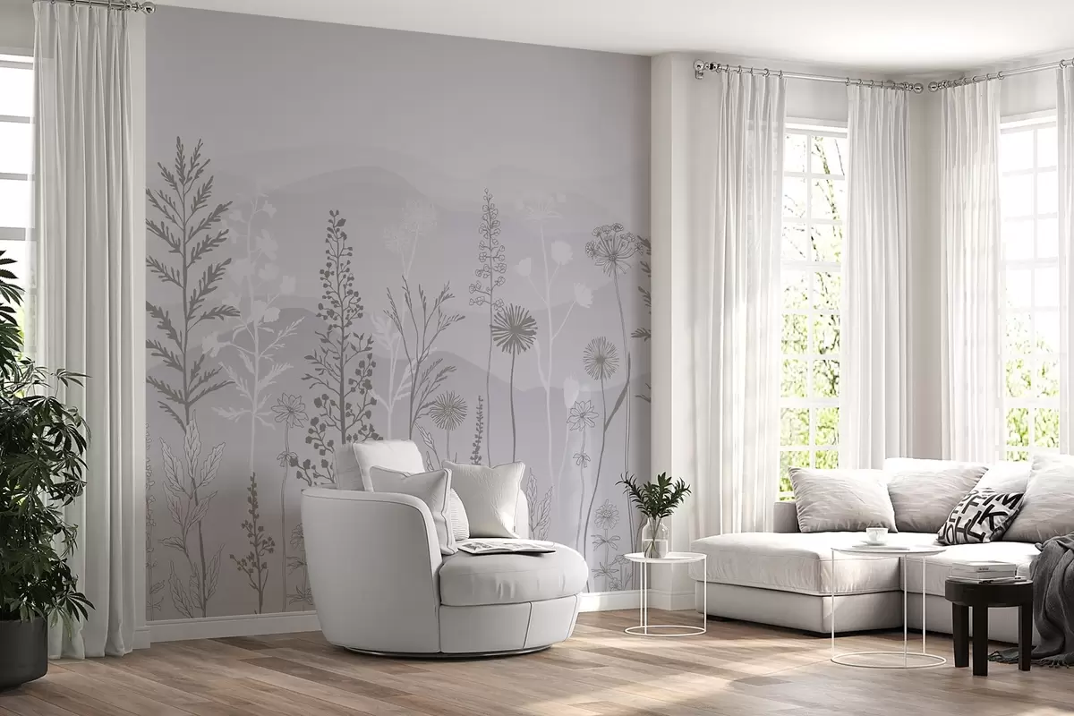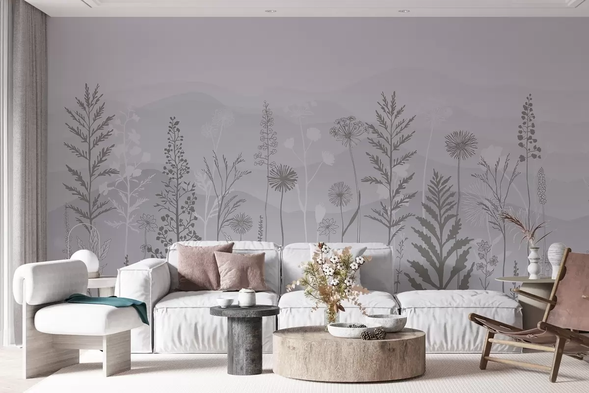 Fototapeter tapet i øko-stil, villblomster i gråtoner Nr. w02443