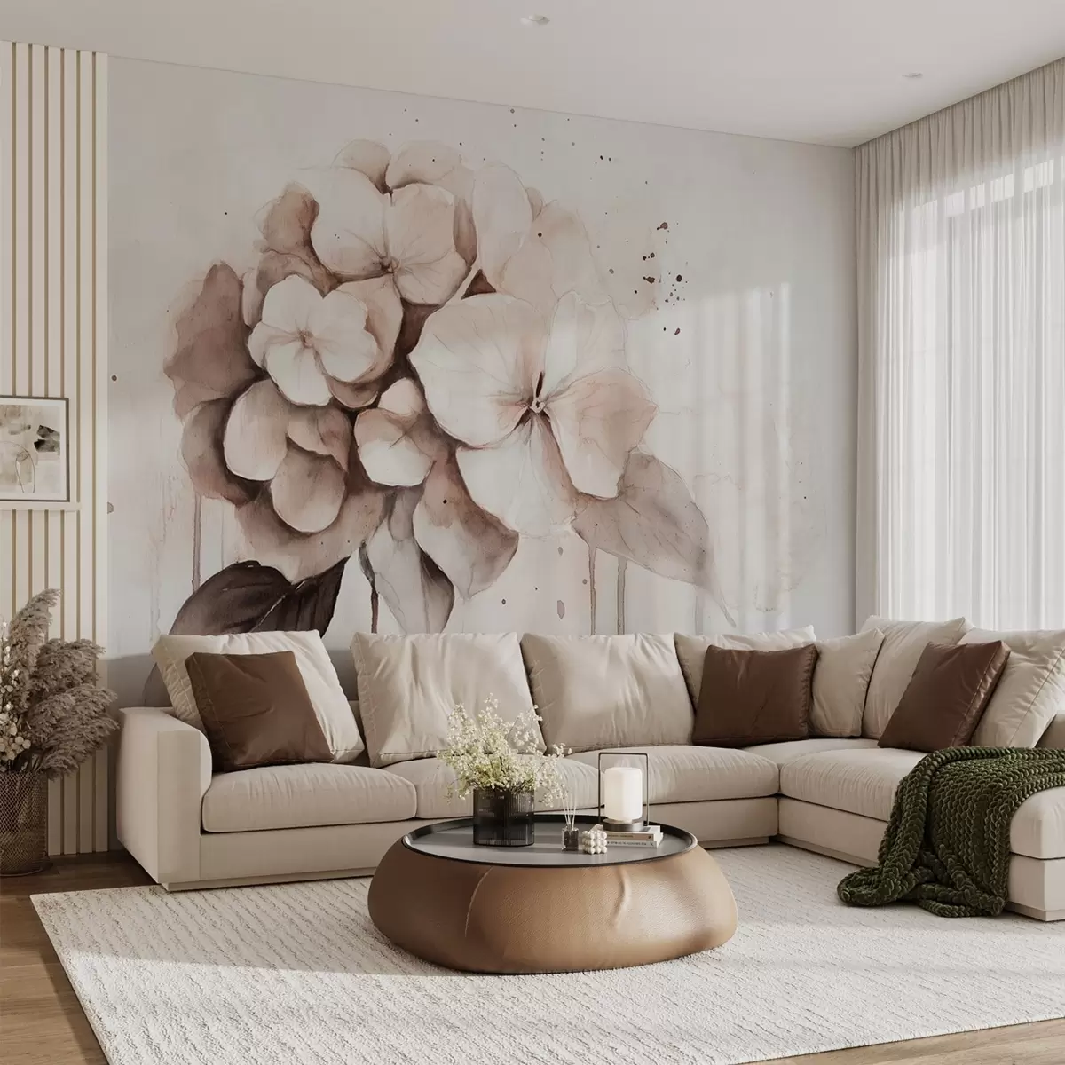 Fototapeter Hortensia-tegning, akvarellstil, beige farger Nr. w02483