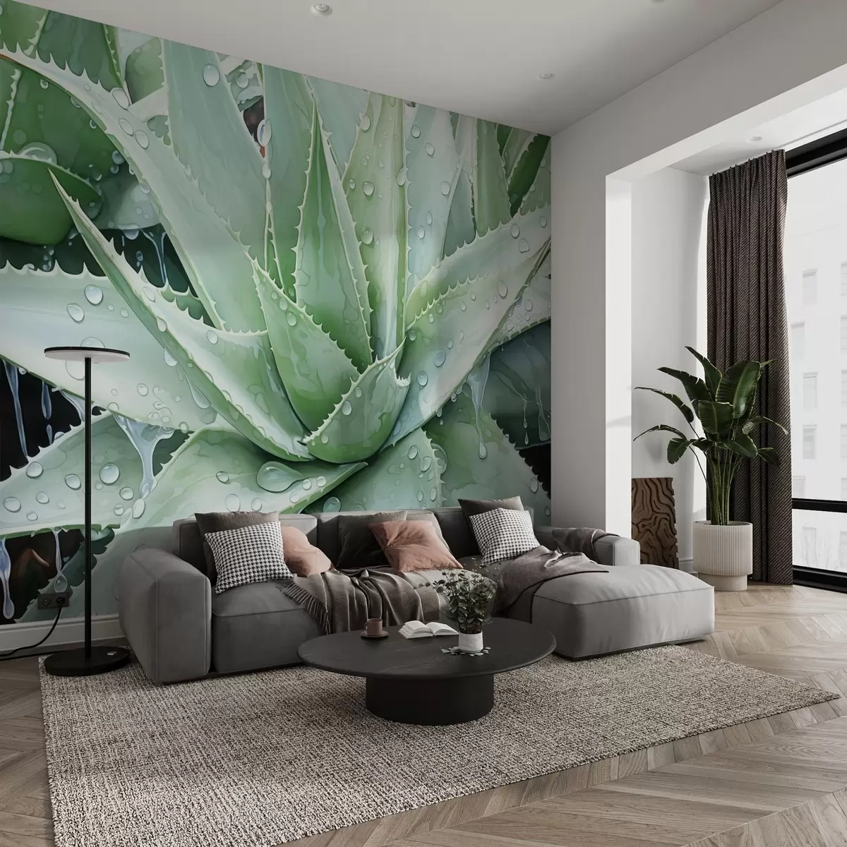 Fototapeter Dugdråper på aloe-imitasjon akvarell Nr. w02503