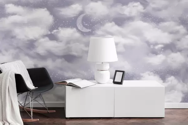 Fototapeter Stjernehimmel med måne og skyer, drømmende, eteriske, myke lilla farger Nr. w02515v4