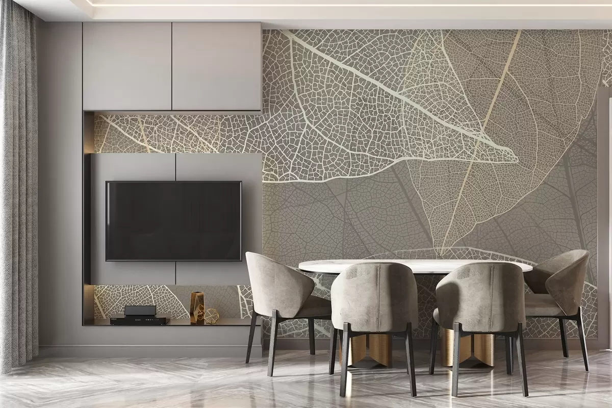 Fototapeter nærbilde av blader med årer i varme gråtoner Nr. w02520v2