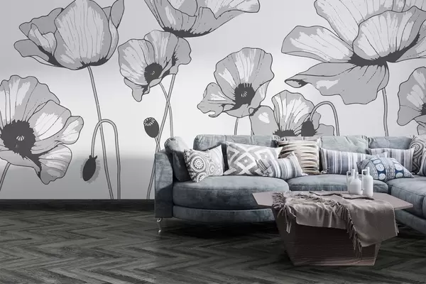 Fototapeter Svarte og hvite valmuer Nr. w02528
