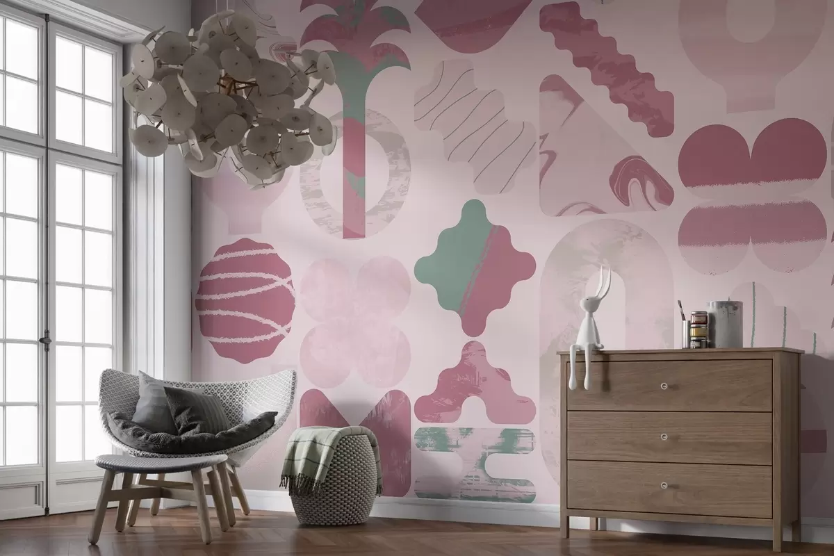 Fototapeter forskjellige interessante former, moderne geometri i rosa farger Nr. w02550