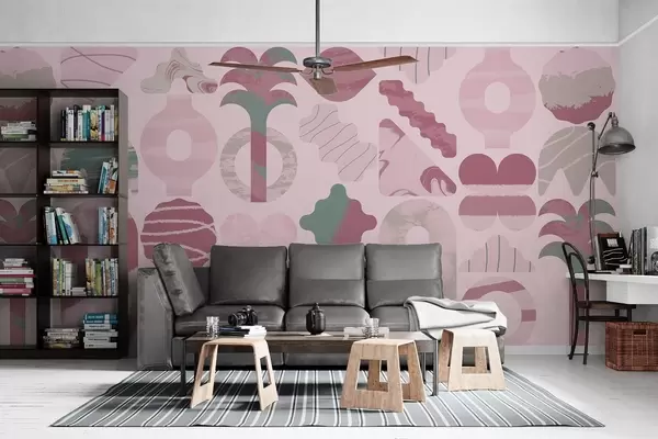 Fototapeter forskjellige interessante former, moderne geometri i rosa farger Nr. w02550