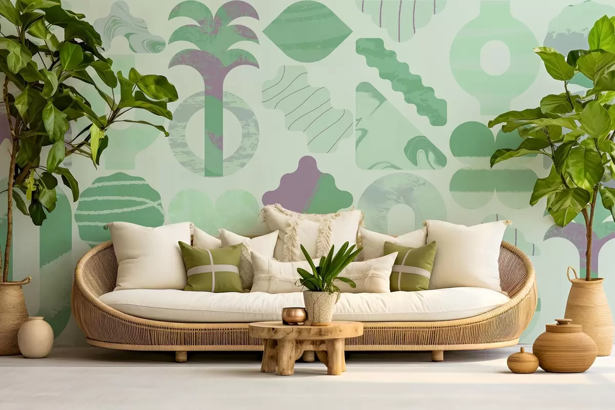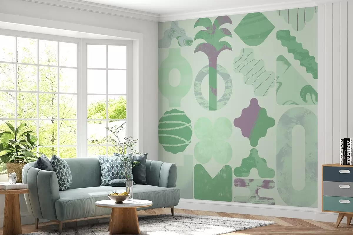 Fototapeter ulike interessante former, moderne geometri i grønne farger Nr. w02550v2