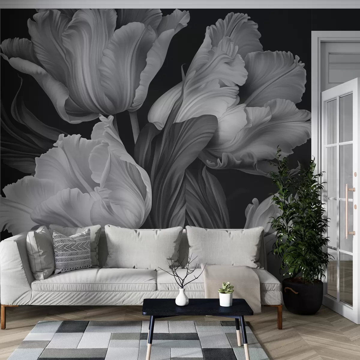 Fototapeter Svart-hvite tulipaner i fotorealistisk stil Nr. w02557