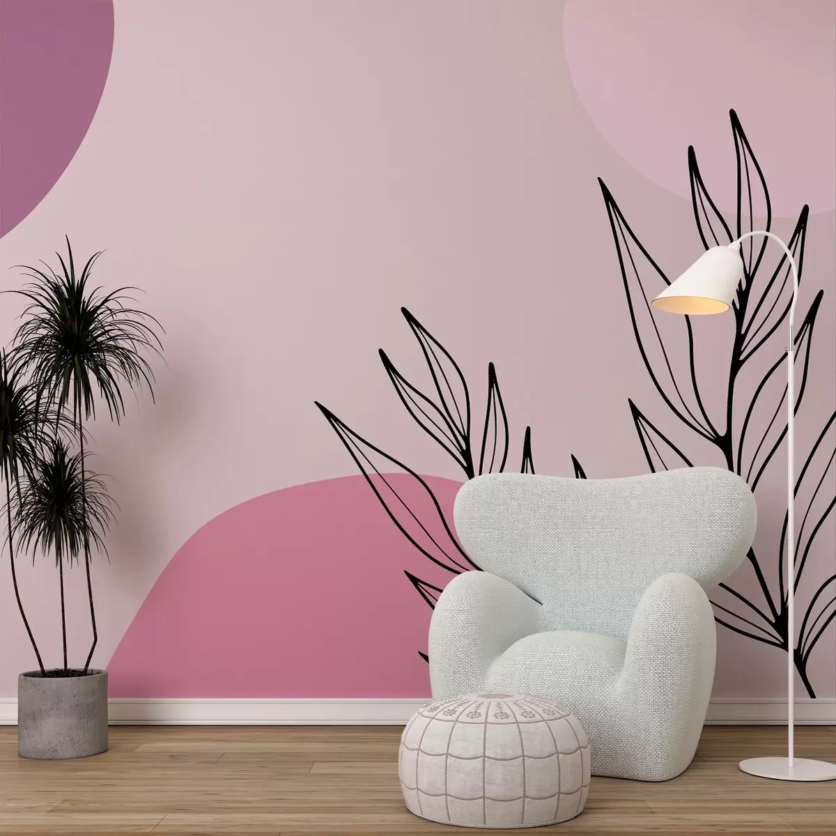 Fototapeter rosa abstraksjon med blader Nr. w02666