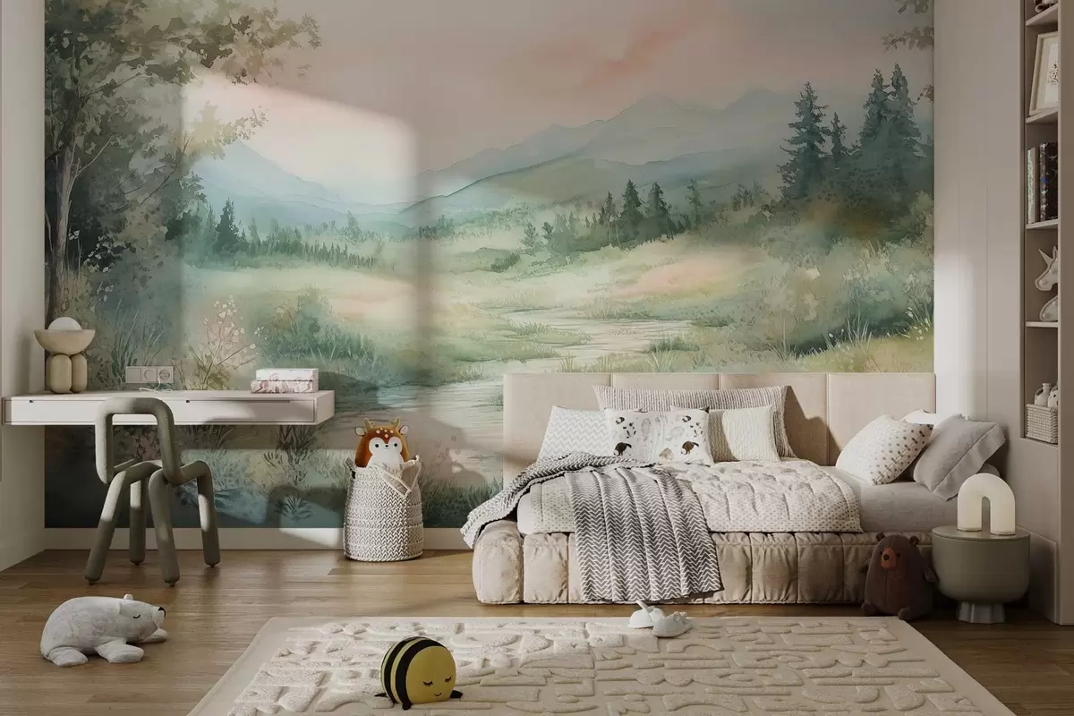 Fototapeter akvarell landskap med sti og fjell Nr. w02764