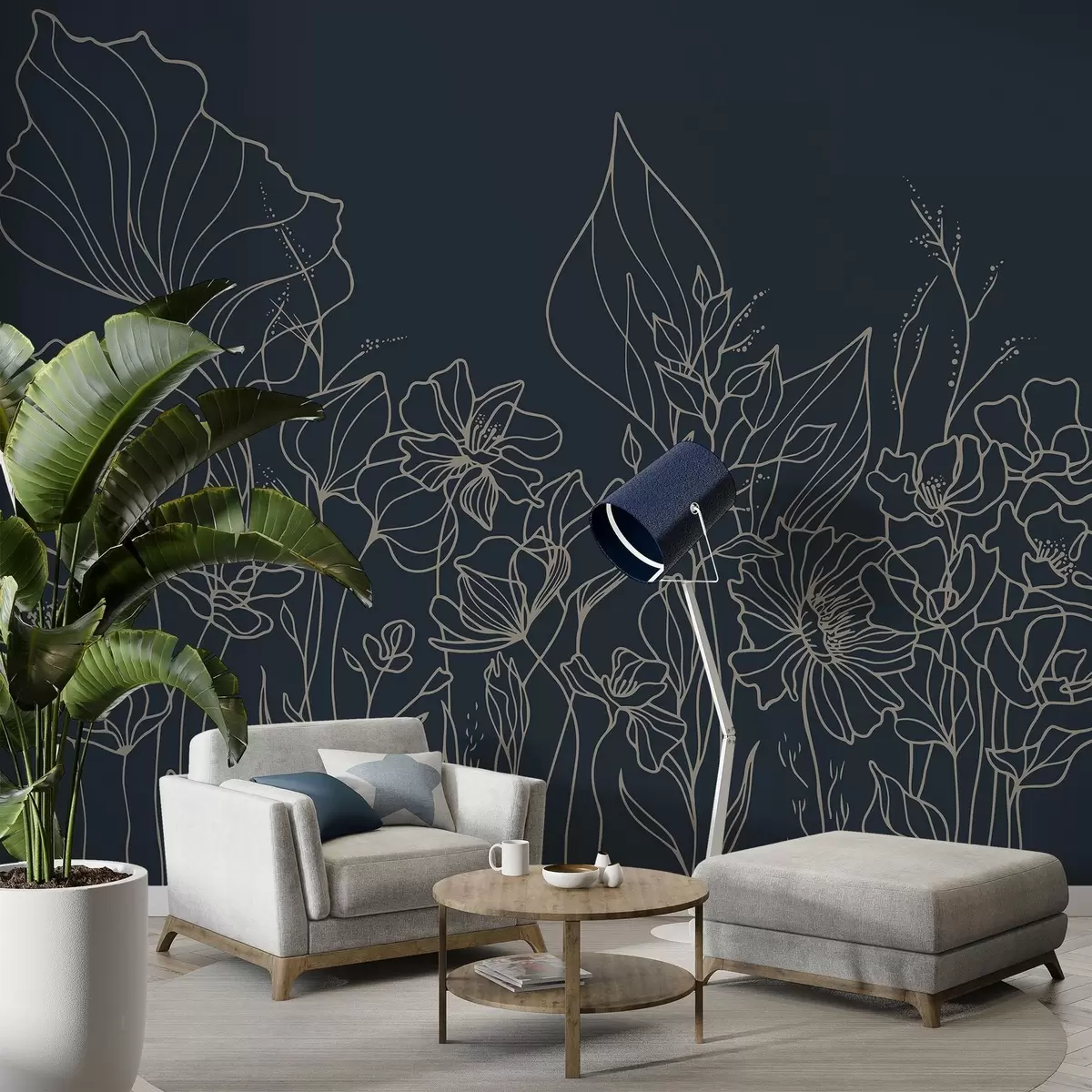 Fototapeter Elegant blomstrete streker på marineblå bunn Nr. w02773v2