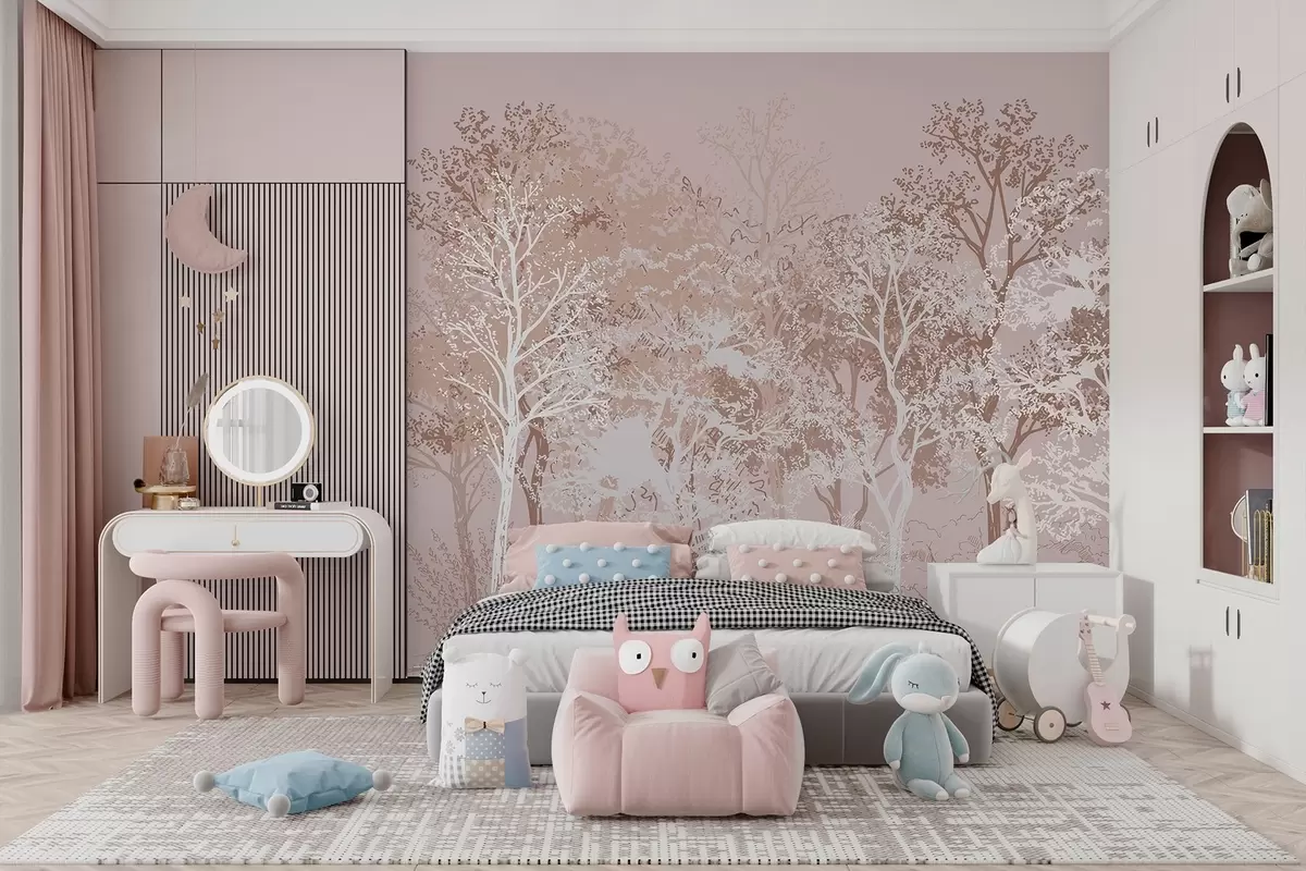Fototapeter Trær i skogen, minimalisme, natur, beige fargepalett Nr. w02930