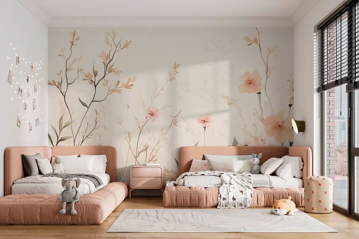 Fototapeter villblomster med ferskenblomster Nr. w03009