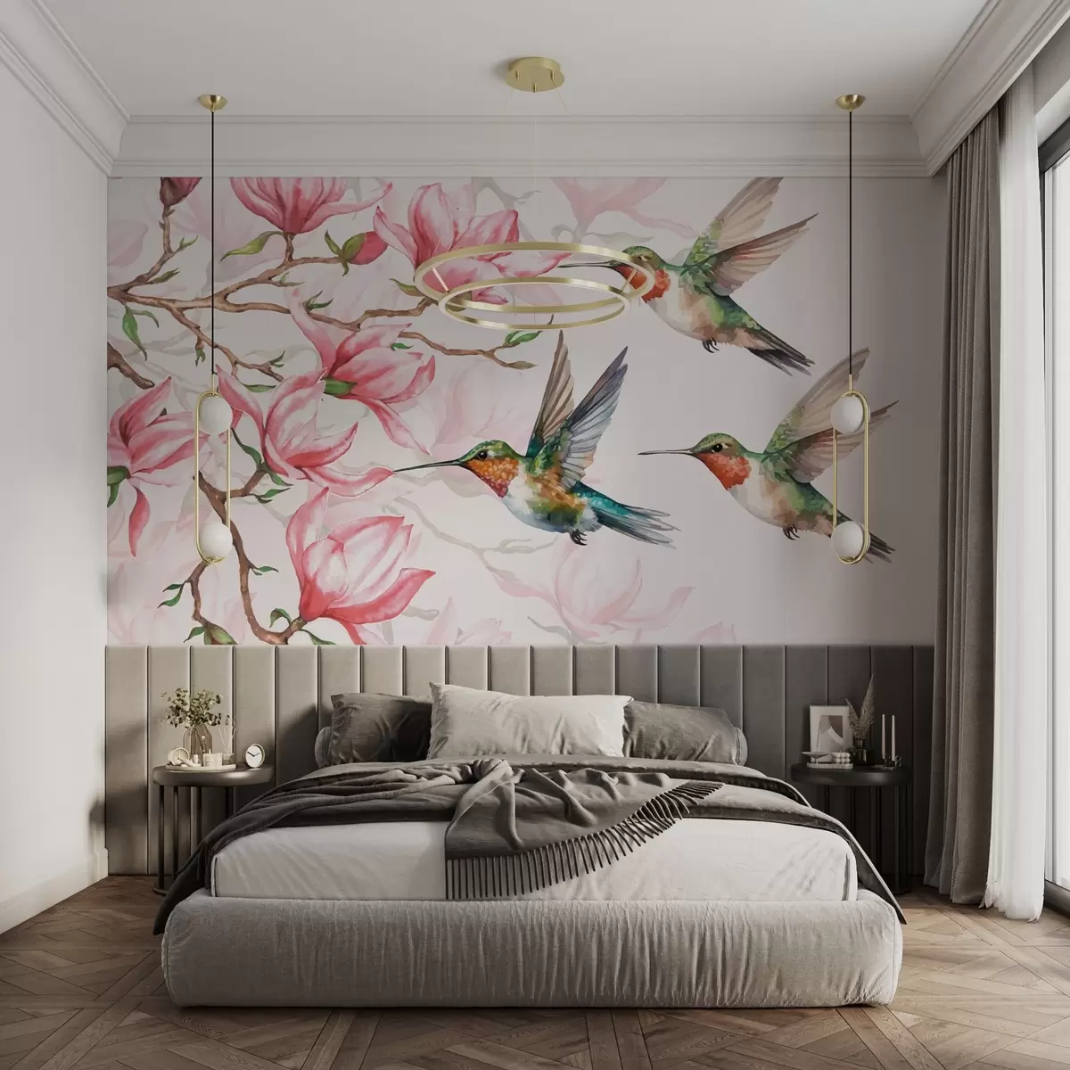 Fototapeter Blomstrende magnoliaer og kolibrier Nr. w03104