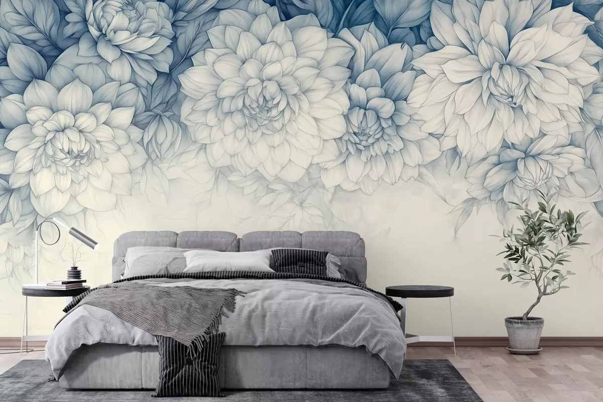 Fototapeter frodige monokrome krysantemum som henger fra toppen Nr. w03110