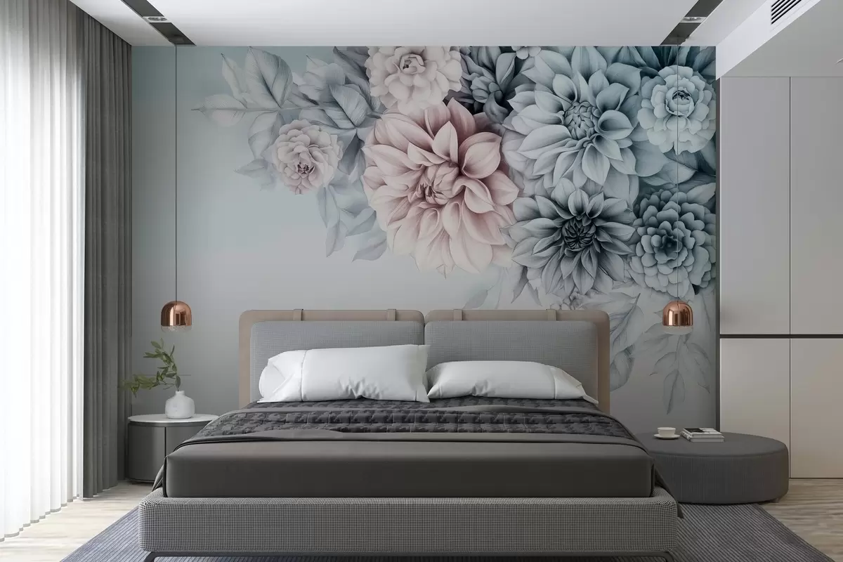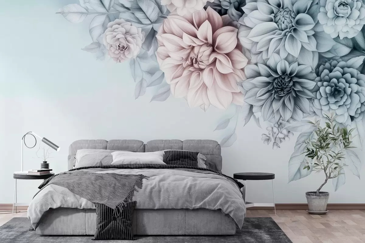 Fototapeter en bukett krysantemum på gråblå bakgrunn Nr. w03118
