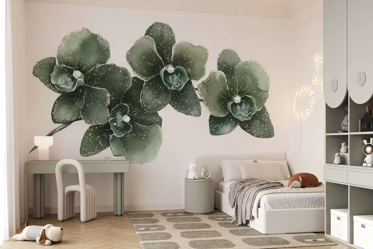 Fototapeter Orhid blomstergren, akvarellstil, blomster, grønne farger Nr. w03165v1