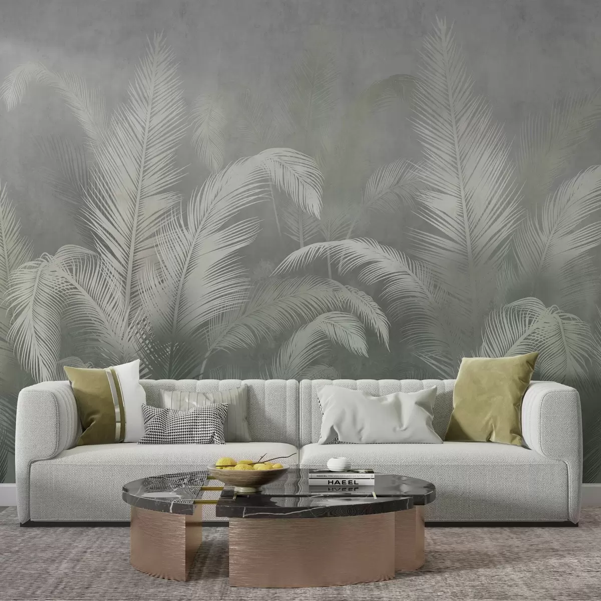 Fototapeter Tropiske palmeblader i grunge-stil i grønn farge Nr. w03250v2