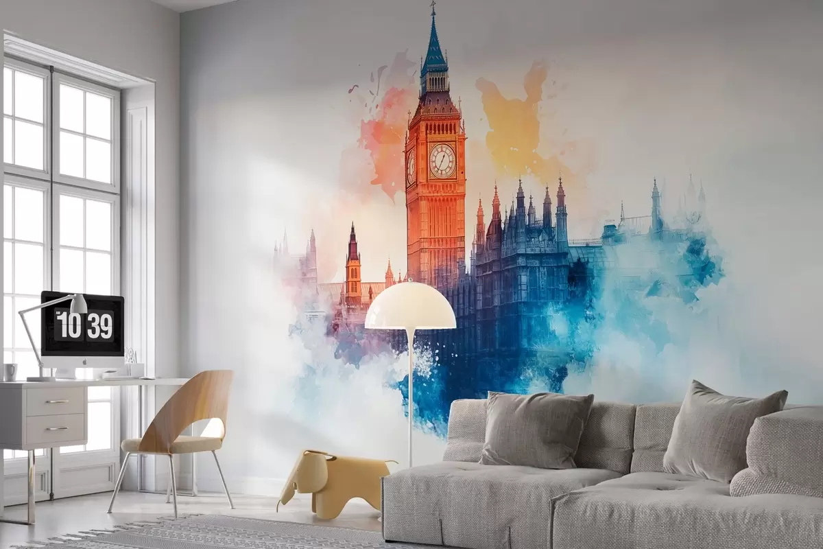 Fototapeter akvarelltegning av Big Ben på lys bakgrunn Nr. w03287