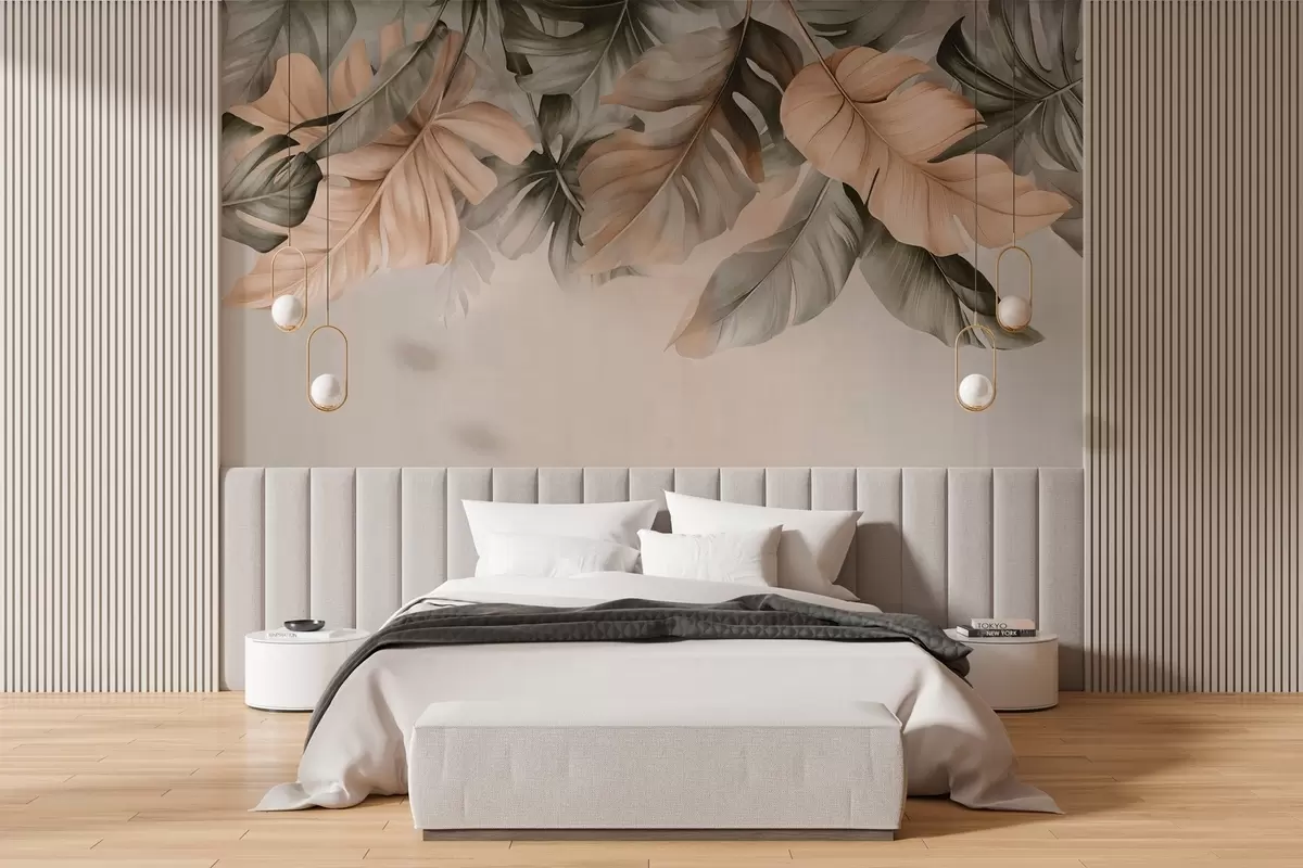 Fototapeter Tropiske blader som henger fra toppen, på en strukturert bakgrunn Nr. w03290