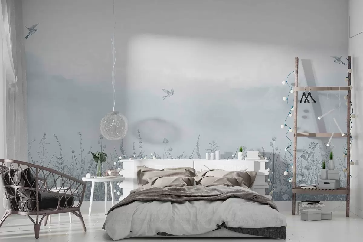 Fototapeter Ville blomster og disig himmel i blå toner Nr. w03391v1