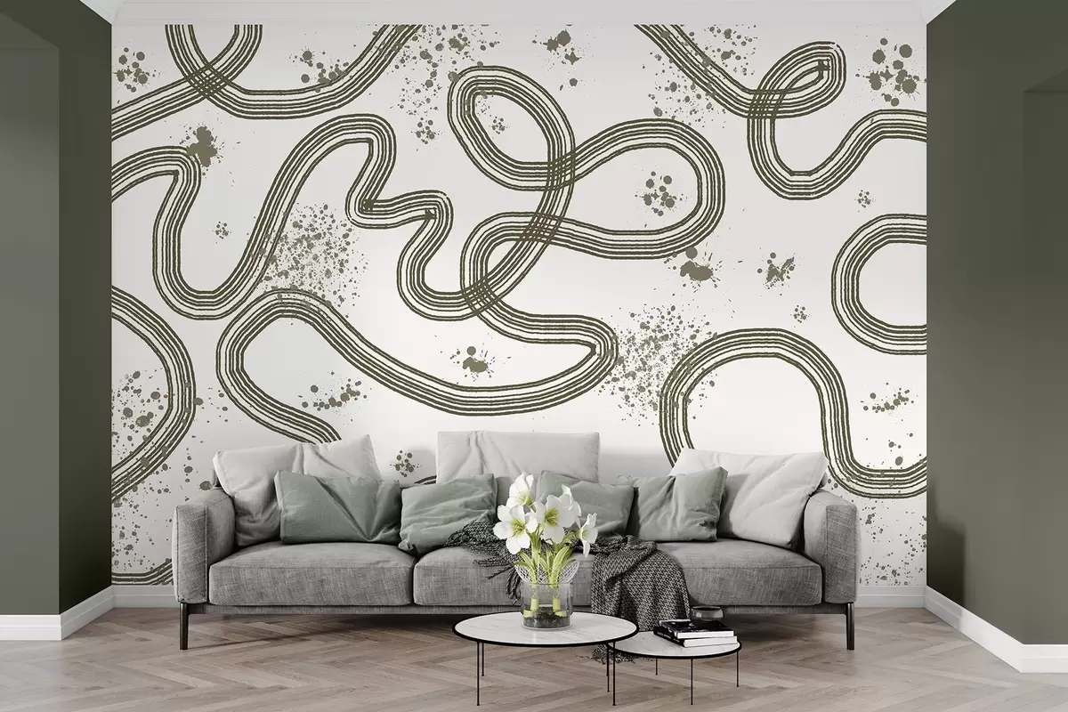 fototapeter Linjetegning, fargeklatter, minimalisme, olivenfarge w03408