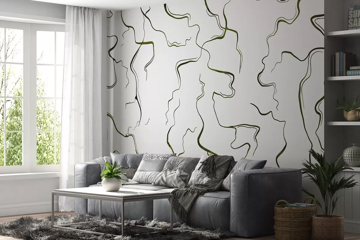 Fototapeter Geometriske linjer, tusjstil, abstraksjon, grønne farger Nr. w03436