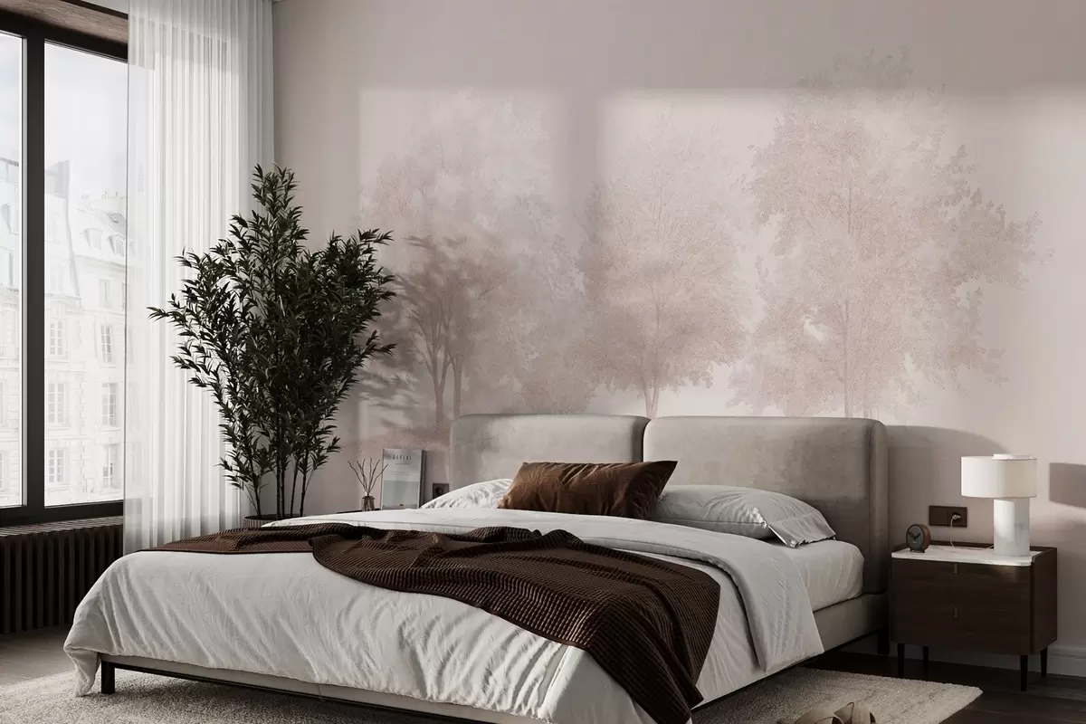 Fototapeter Blomstrende trær, vår, blyanttegning, rosa farger, natur Nr. w03549