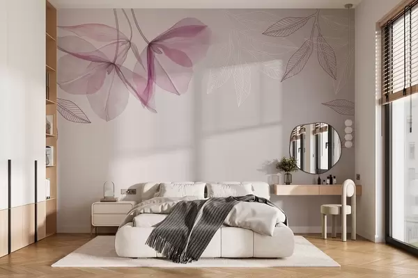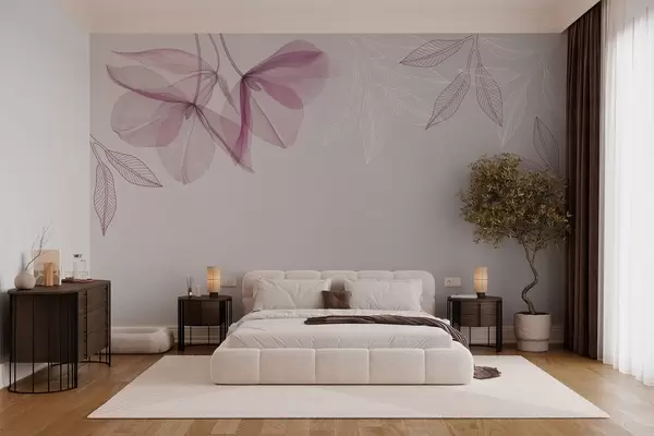 Fototapeter delikate gjennomskinnelige blomster og blader i lilla toner Nr. w03616v4