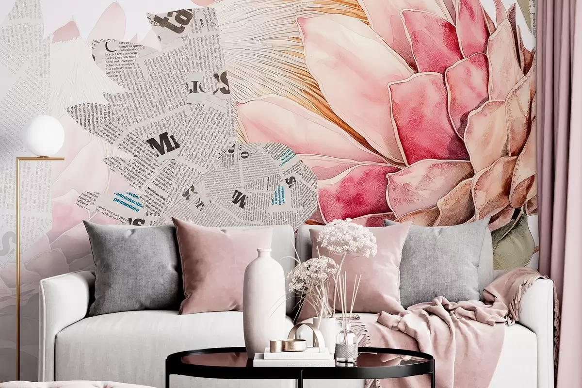 Fototapeter Proteablomster, aviskunst, blomster, tropisk, naturlige farger Nr. w03667