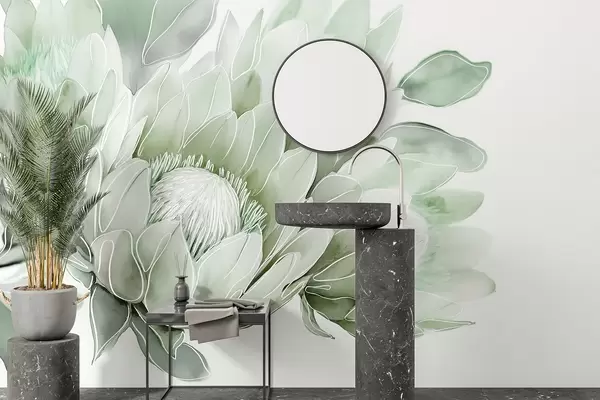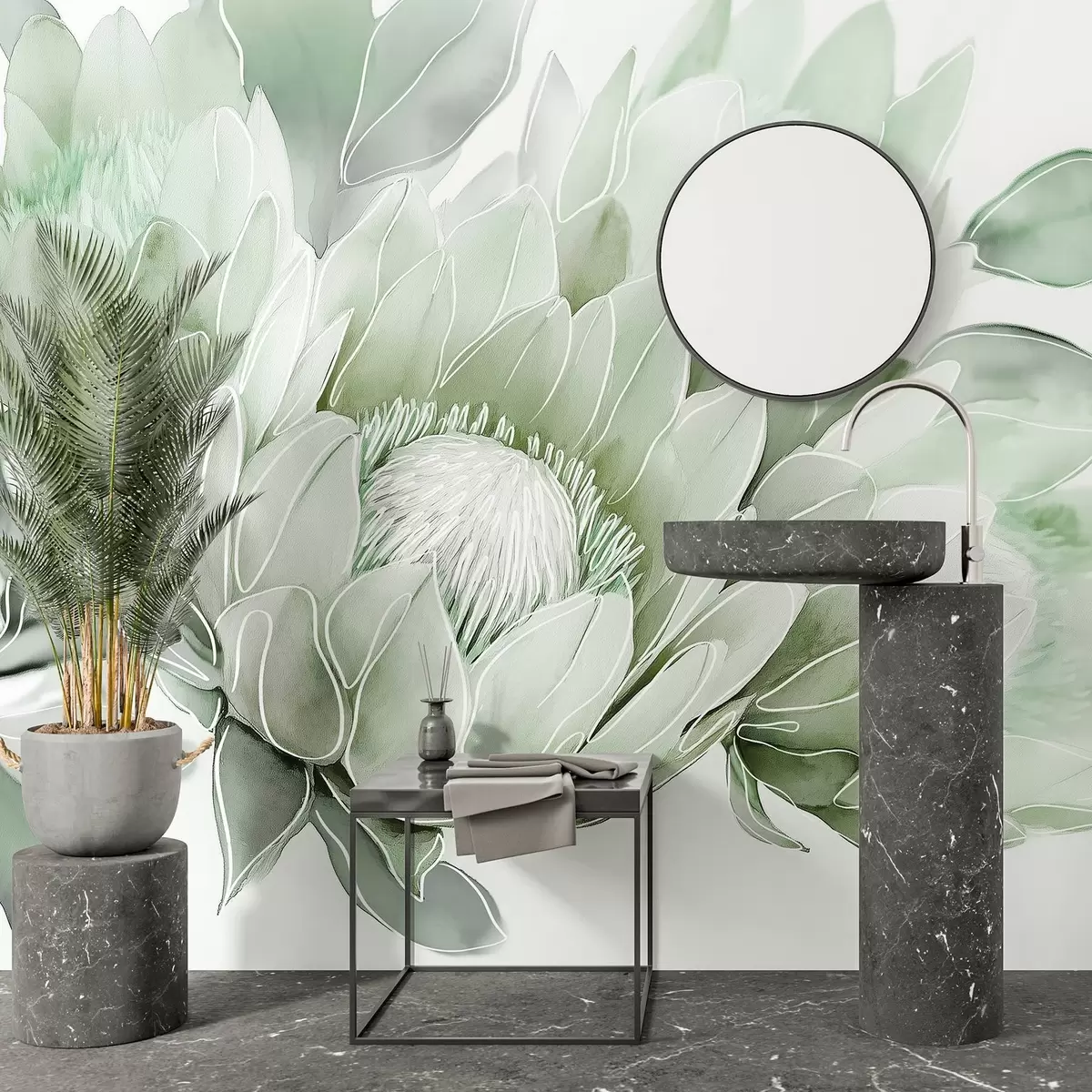 Fototapeter Vakre proteablomster, strektegning, tropiske, grønne farger Nr. w03669v2