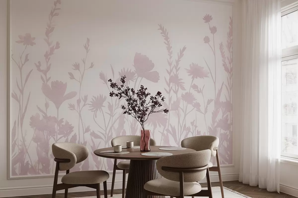 Fototapeter Sommereng, rustikk, blomster, rosa fargepalett Nr. w03670v2