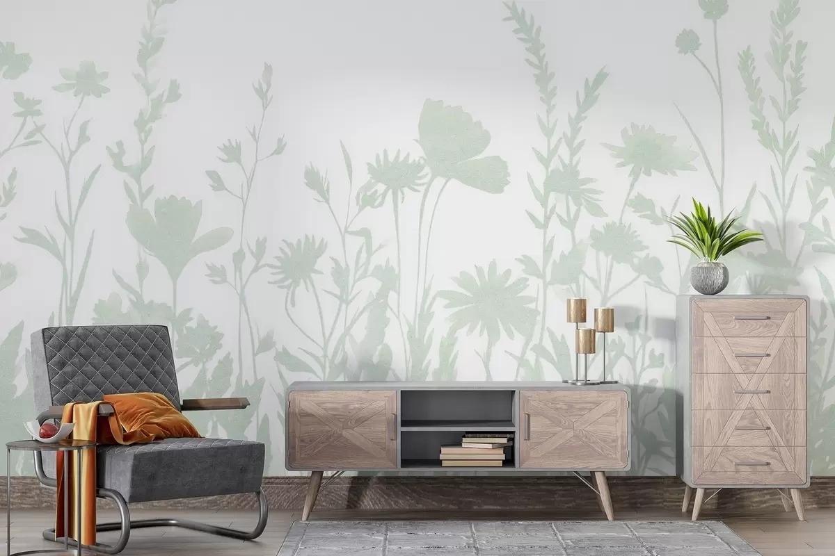 Fototapeter Sommereng, rustikk, blomster, grønn fargepalett Nr. w03670v3
