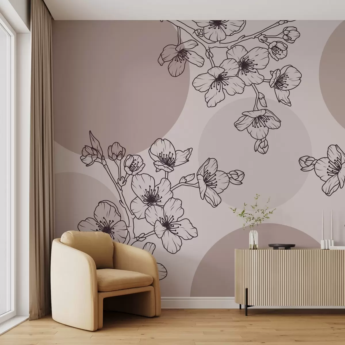 Fototapeter Grener med blomster på fargede sirkler i brune toner Nr. w03712