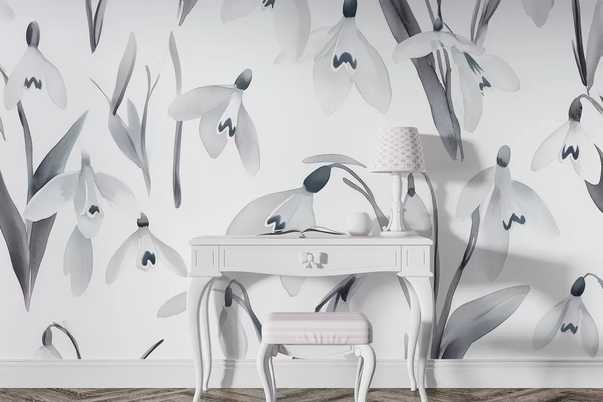 Fototapeter Snøklokker i akvarellstil, grå farger Nr. w03754v1
