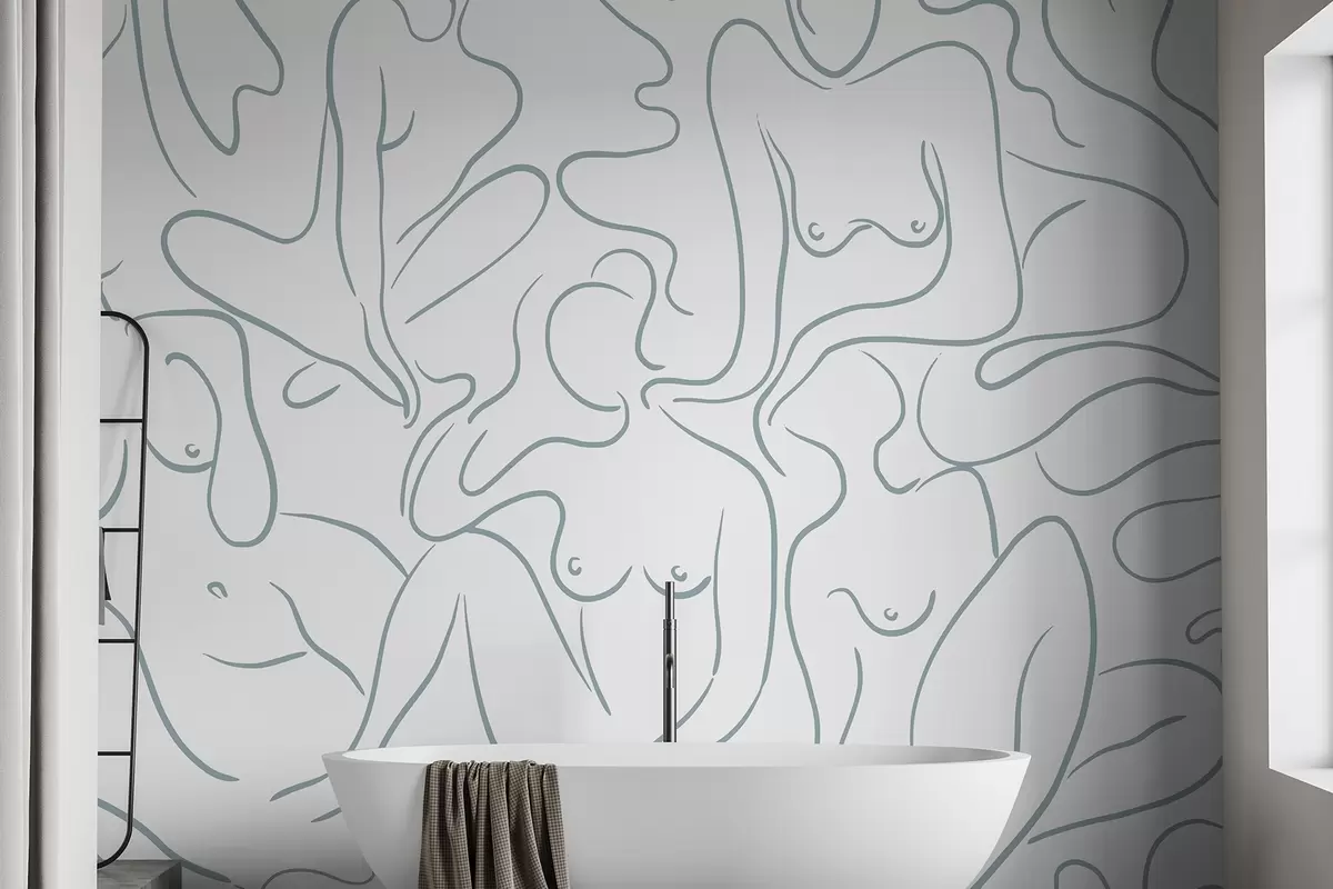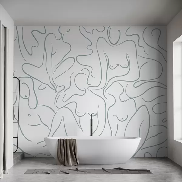 Fototapeter Stregtegning anatomiske silhuetter, abstraksjon, blå farge Nr. w03755v1