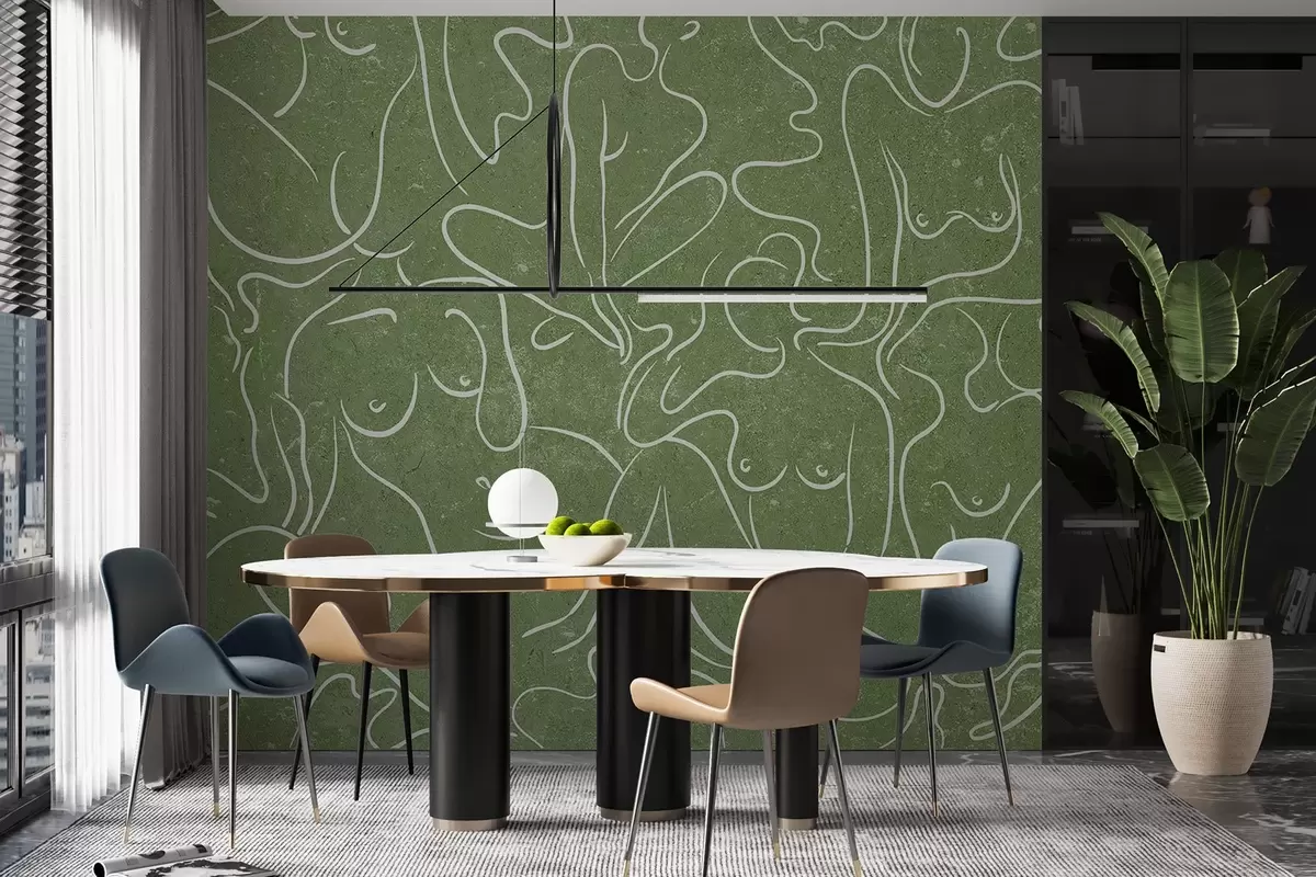 Fototapeter Stregtegning av anatomiske silhuetter, abstraksjon, grønn bakgrunn Nr. w03756v2