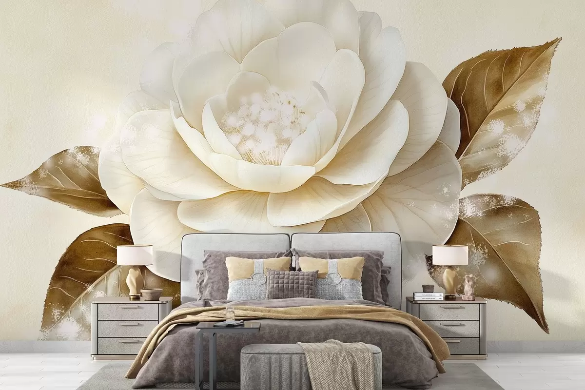 Fototapeter Vakker pionblomst i beige farger Nr. w03757