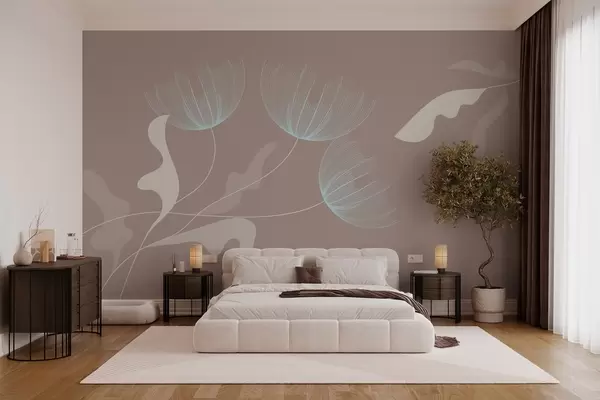 Fototapeter elegante minimalistiske blomster i hvite og blå toner på en mokkabakgrunn Nr. w03763v3