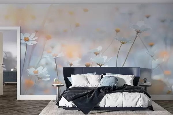 Fototapeter Lyseblå blomster i varmt kveldslys Nr. w03802