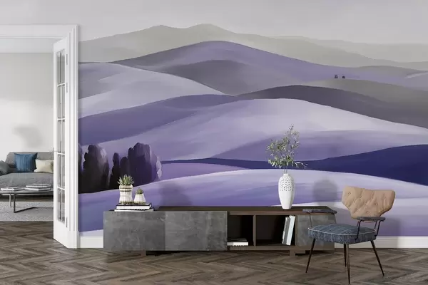 Fototapeter Landskap med trær, Toscana, lilla farger, oljestil Nr. w03880v3