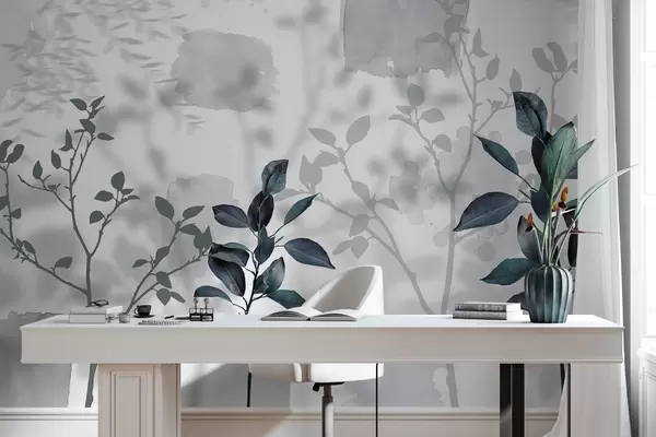 Fototapeter Sitrontreets blader, tregrener skygger, natur, akvarell, blå Nr. w03910v2