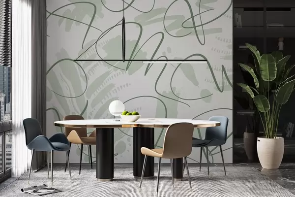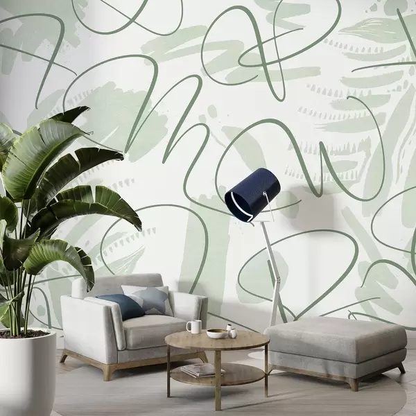 Fototapeter Kalligrafisk abstraksjon med bokstaver, penselstrøk og grønn farge Nr. w03913v3