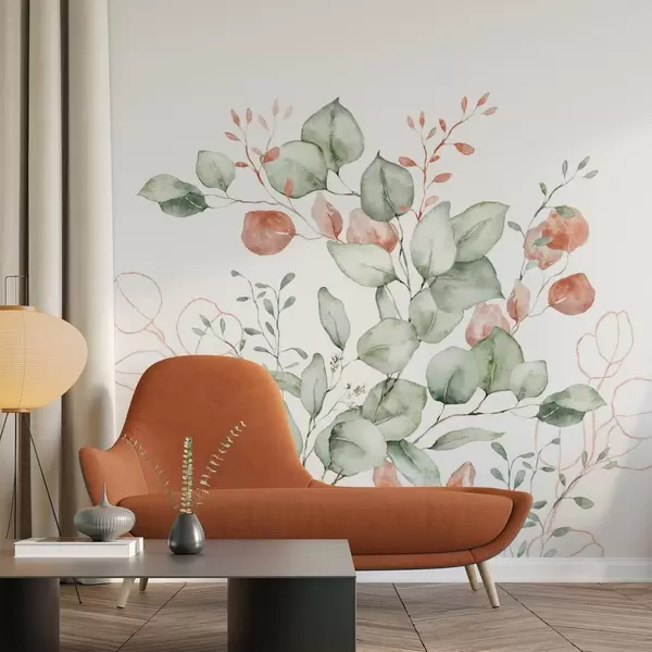 Fototapeter Vegetasjon og grener imitasjon av strukturert akvarell, nyanser av grønt og rødt Nr. w03927v1