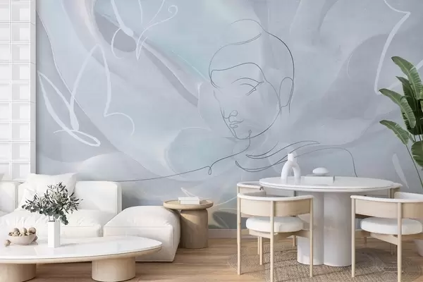Fototapeter Blomsterabstraksjon med Buddha-strektegning, blå farger Nr. w04004v1