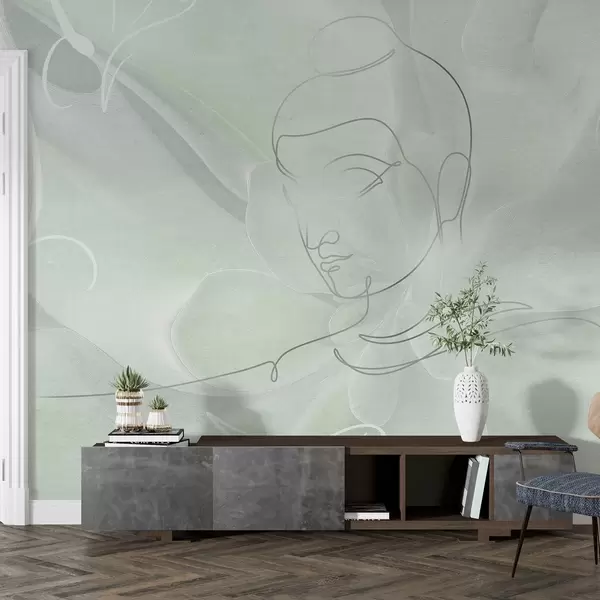 Fototapeter Blomsterabstraksjon med Buddha-strektegning, grønne farger Nr. w04004v3